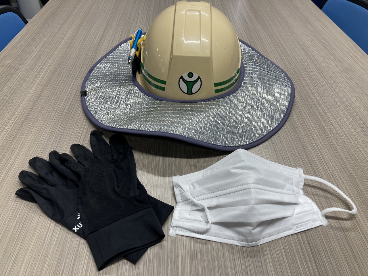 また、⻑時間、外での仕事をしておりますので、1時間ごとに⼩休⽌を挟んだり、こまめな⽔分補給をするように促しています。