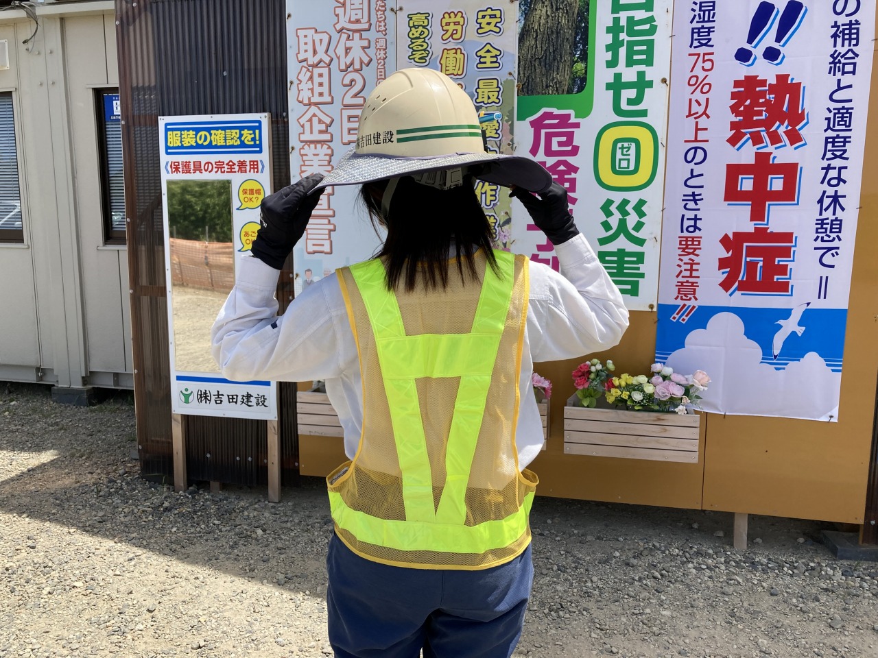 現場付近でヘルメットバイザーをしている者がいたらそれは私です。工事の質問など、気軽に話しかけてくださいね!