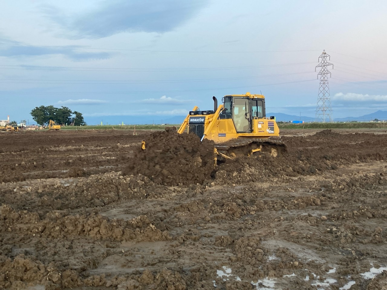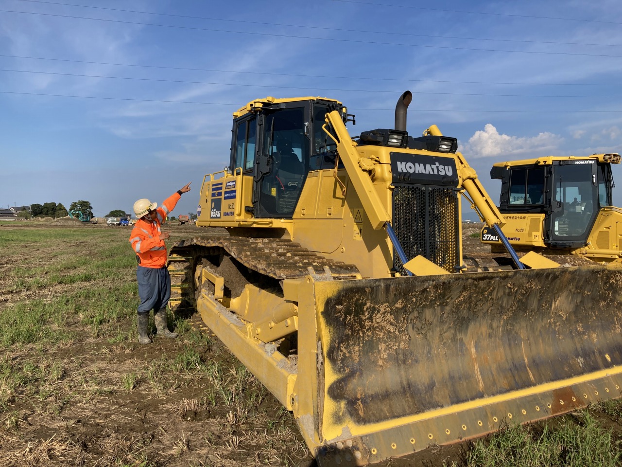 その均平を行うためにブルドーザーを使用して「耕土を削り、押し、均す」のですが、計画された田んぼの高さにするために以前までは