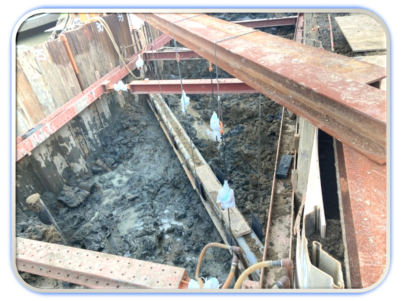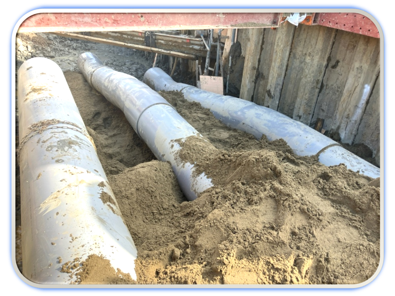 まず、現在⾏っている仕事は【伏越⼯】と⾔って⽤⽔路や下⽔道管が道路や他の地下施設を横断する際に、地下に⽔路や管を埋設する⼯法になります。